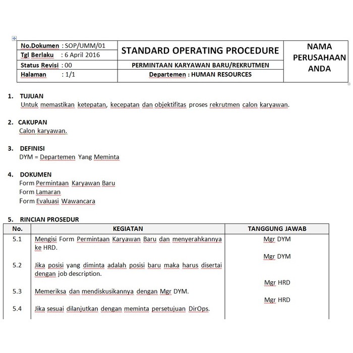 Sop (standar operational prosedur) hrd ini terdiri atas 21 prosedur, yang meliputi: Erik setyo santoso, st, mt. Pada perusahaan yang berorientasi profit, . Sop penyusunan laporan kinerja triwulanan (interim). Kantor wakil rektor bidang sumberdaya & organisasi.